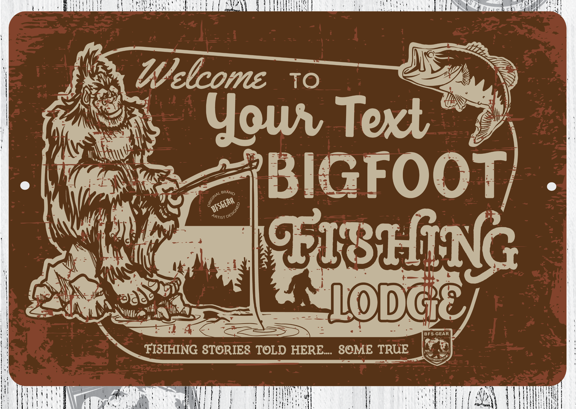 Personalized Bigfoot Fishing Tours & Lodge 12x18 Metal Sign