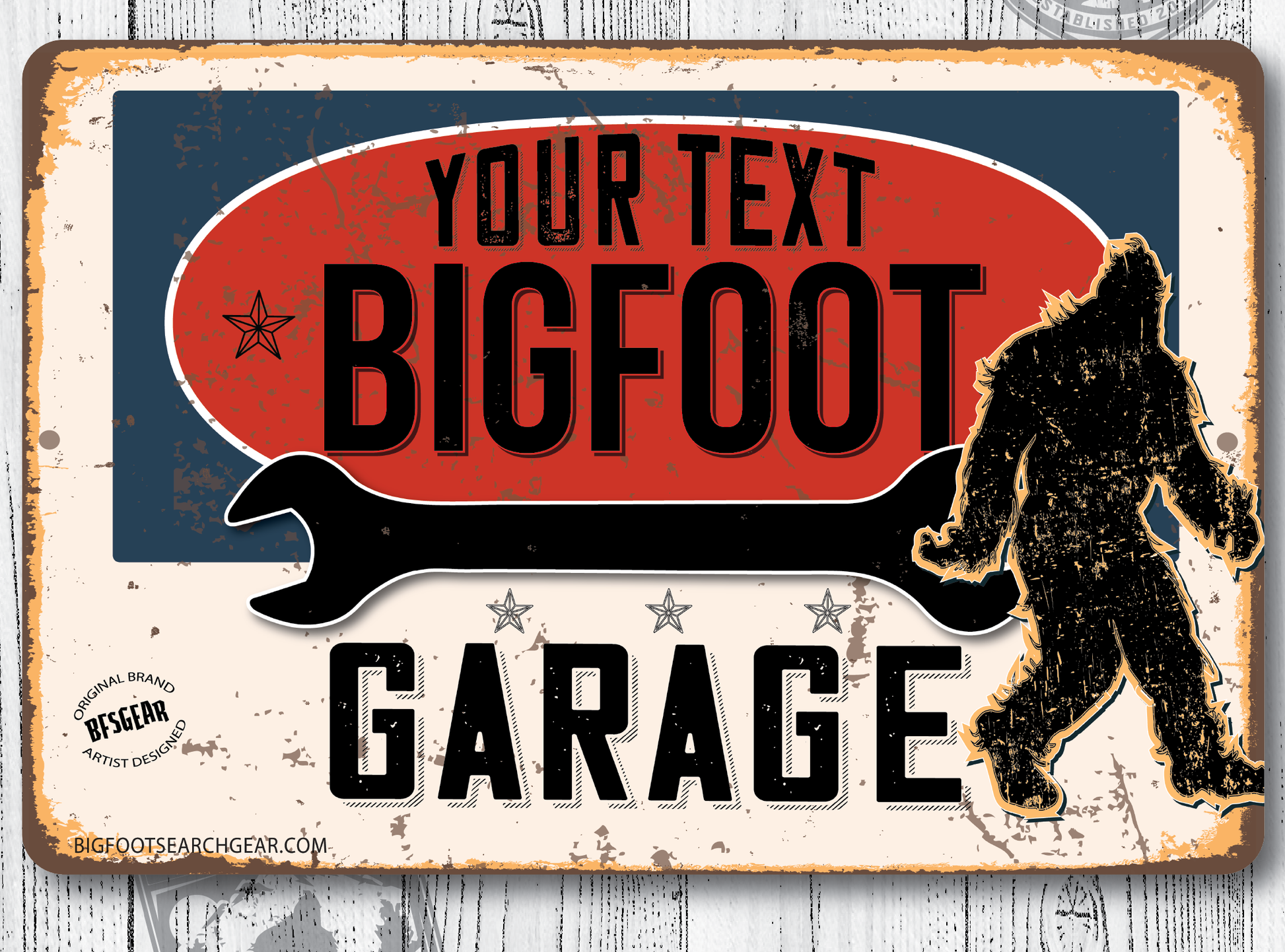 Personalized Bigfoot Garage 12x18 Metal Sign