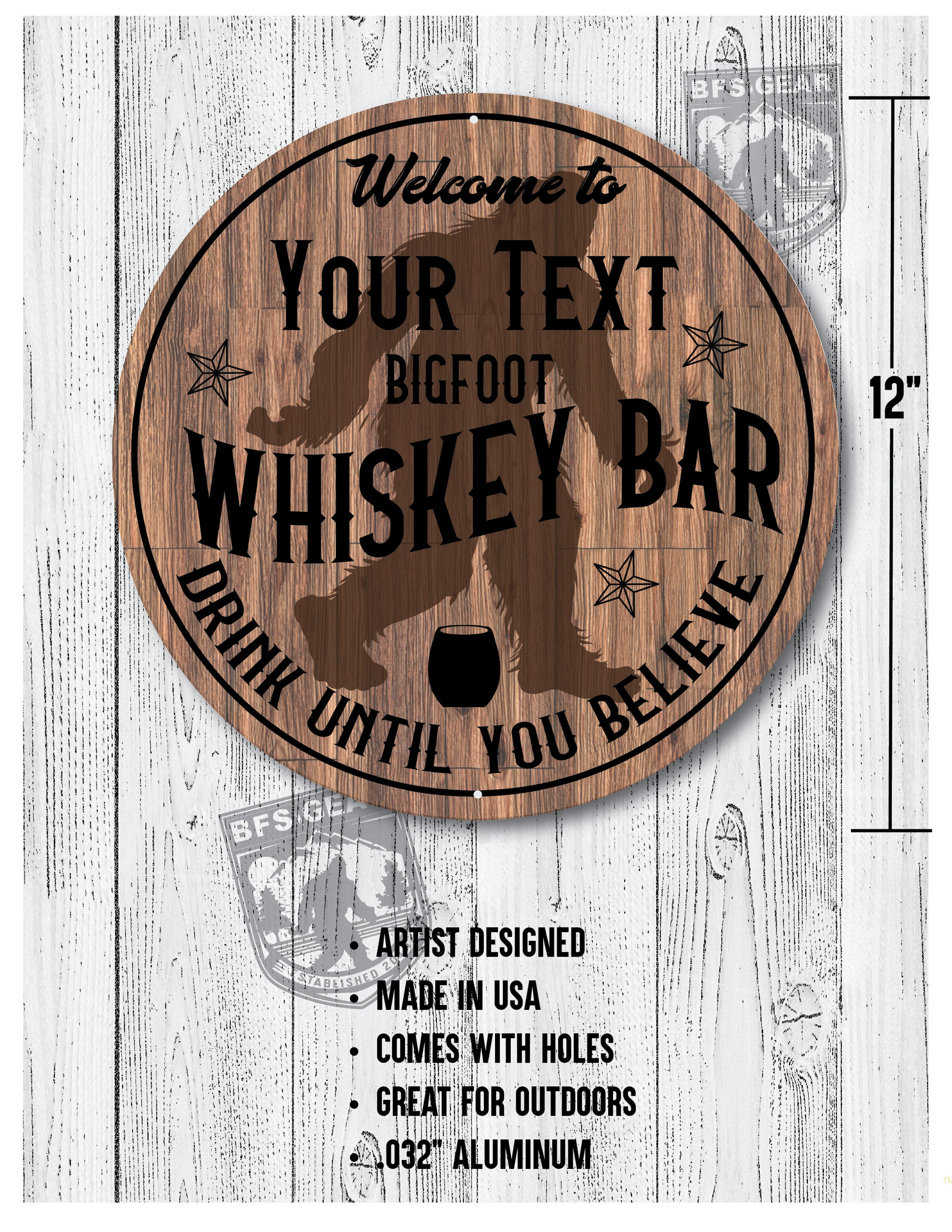 Personalized Bigfoot Whiskey Bar 12x12 Metal Sign