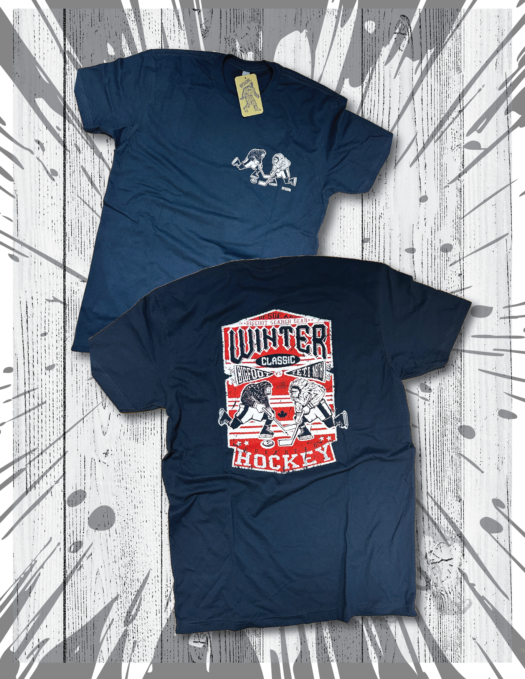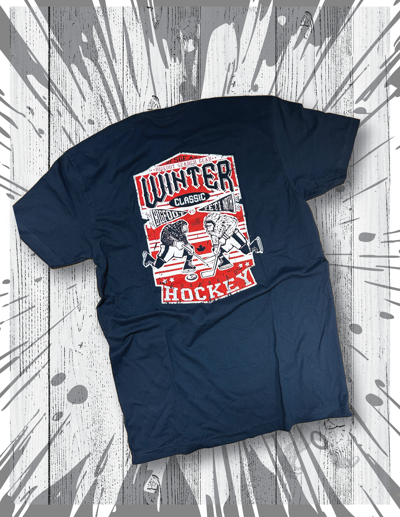 It's a showdown between Bigfoot and Yeti at this year's much anticipated Winter Classic. Premium event shirts are available in navy short sleeve tees, so make sure to grab one before you find your seat! All sizes are unisex.